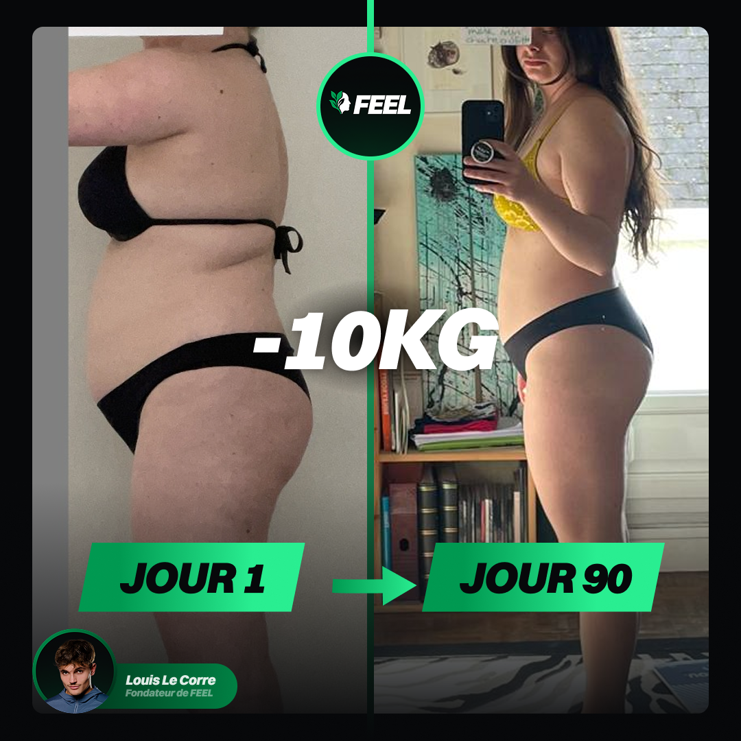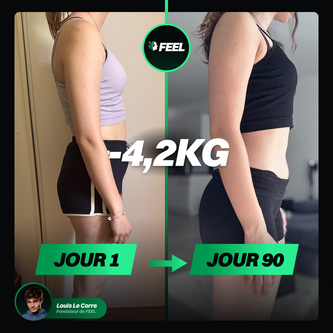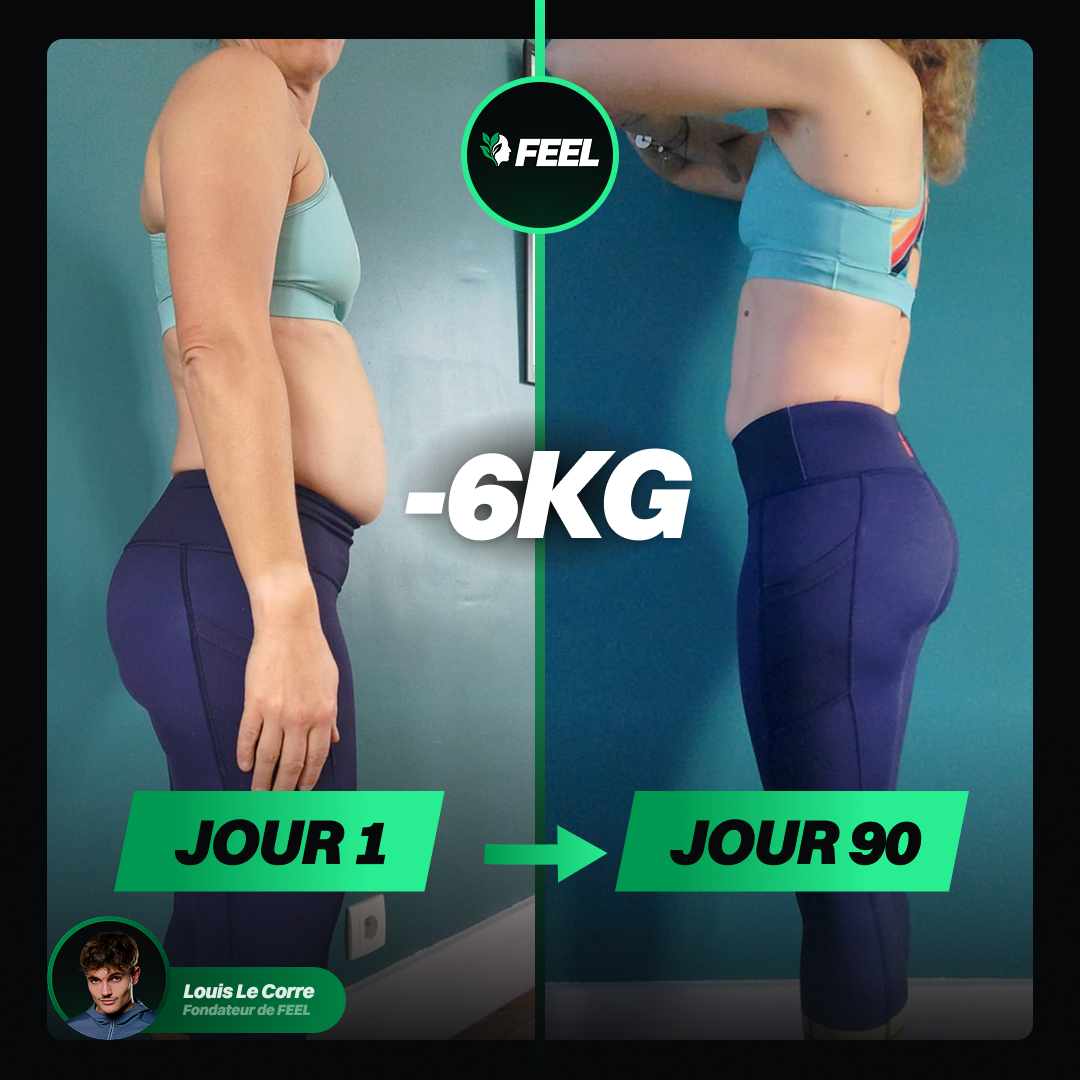 Avant, j’étais épuisée entre le boulot, le manque de temps et l’impression de ne plus avoir d’équilibre. Avec le programme, tout est devenu simple : je mange mieux, je bouge plus, sans stress, juste avec un cadre clair et un vrai accompagnement. Résultat, j’ai perdu 20 kg en trois mois, et si j’ai réussi avec mon emploi du temps, n’importe qui peut le faire.