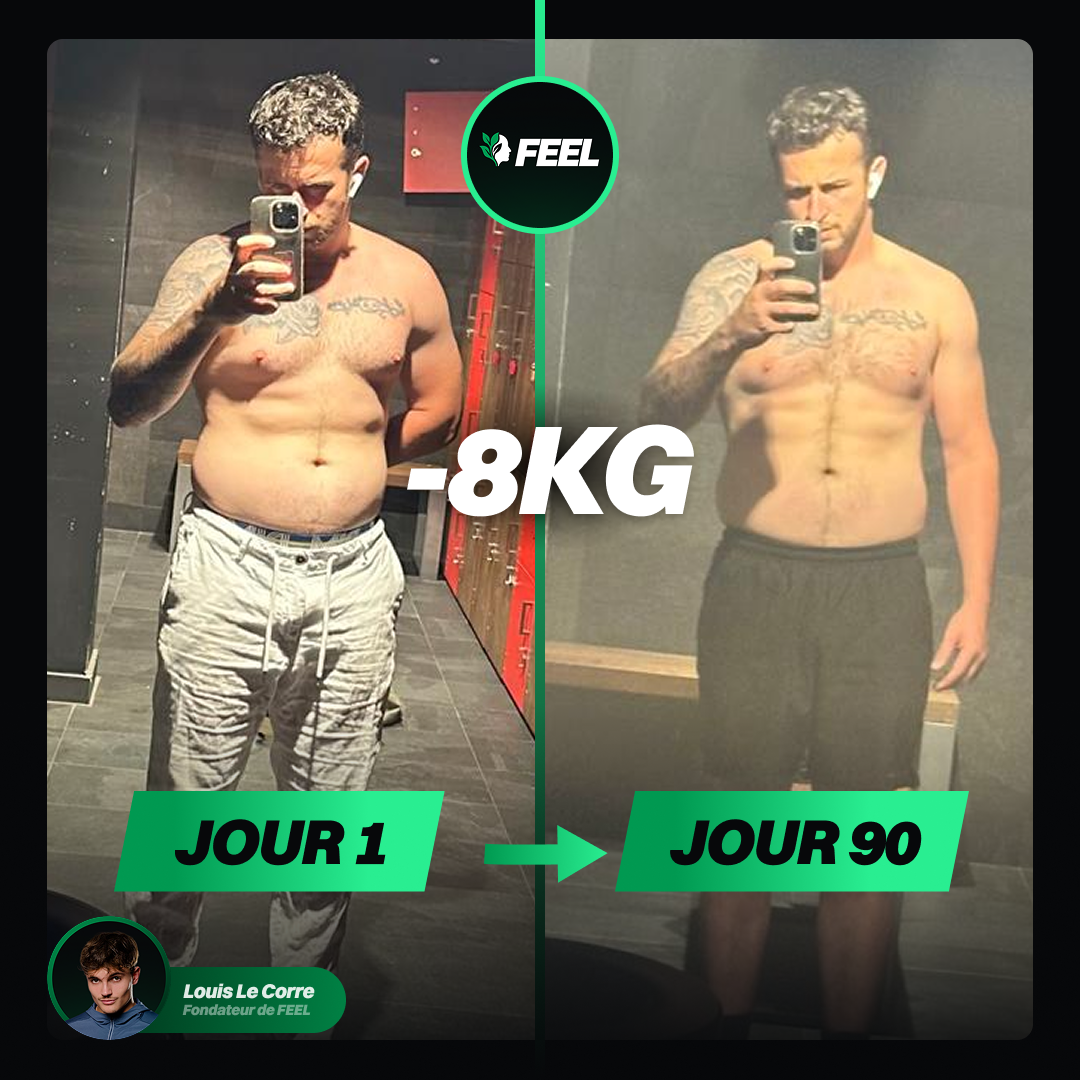 Salut Louis, je te fais un retour du premier mois, j’ai perdu 4,2 kg donc super content !! Merci d’être présent au quotidien pour m’aider à atteindre mes objectifs. Prochain palier maintenant (on vise les –8 kg en 2 mois !)